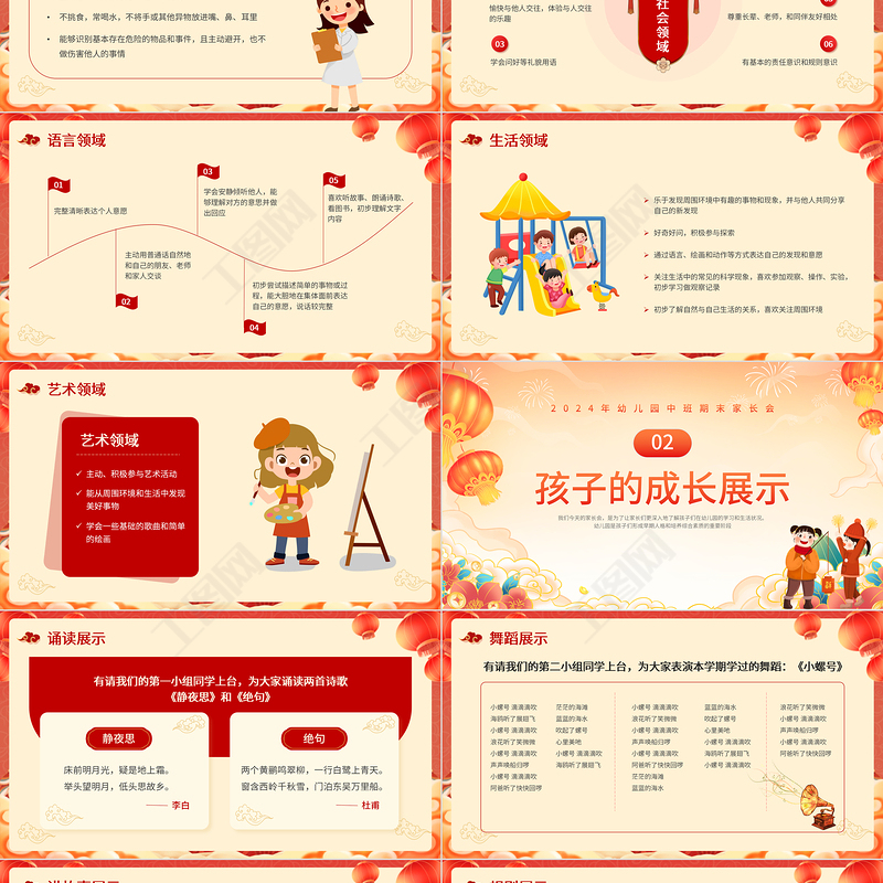幼兒園中班期末家長會(huì)PPT精美卡通風(fēng)家園以愛相約成長共同見證課件下載 Array
