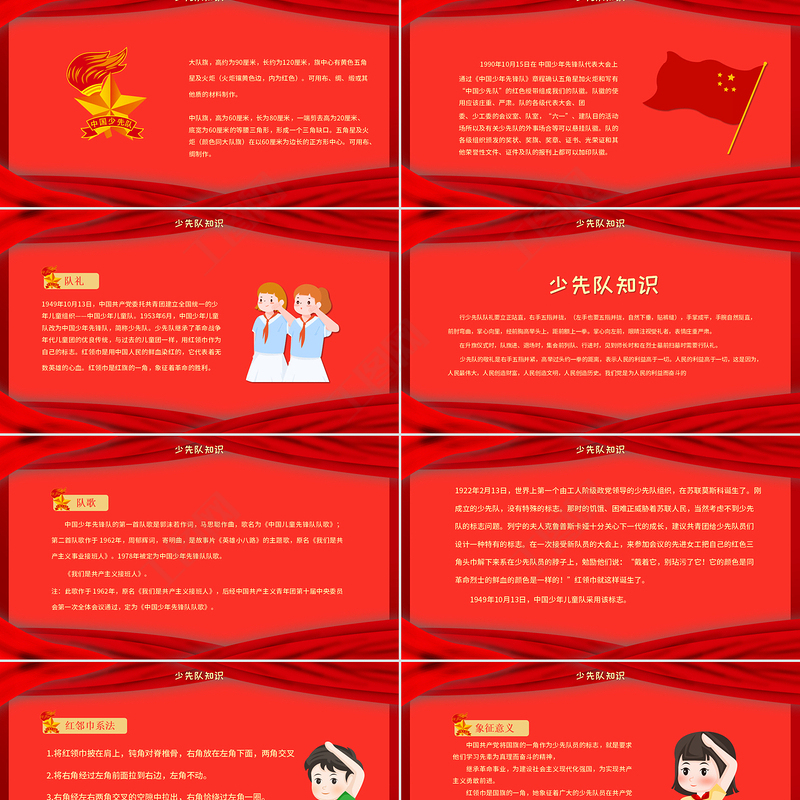 卡通紅色中國(guó)少年先鋒隊(duì)少先隊(duì)建隊(duì)日建隊(duì)71周年P(guān)PT模板