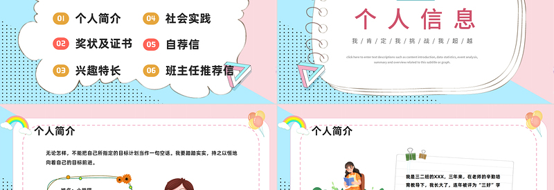 2022小升初個(gè)人簡歷PPT卡通風(fēng)小升初個(gè)人簡歷介紹課件模板 Array
