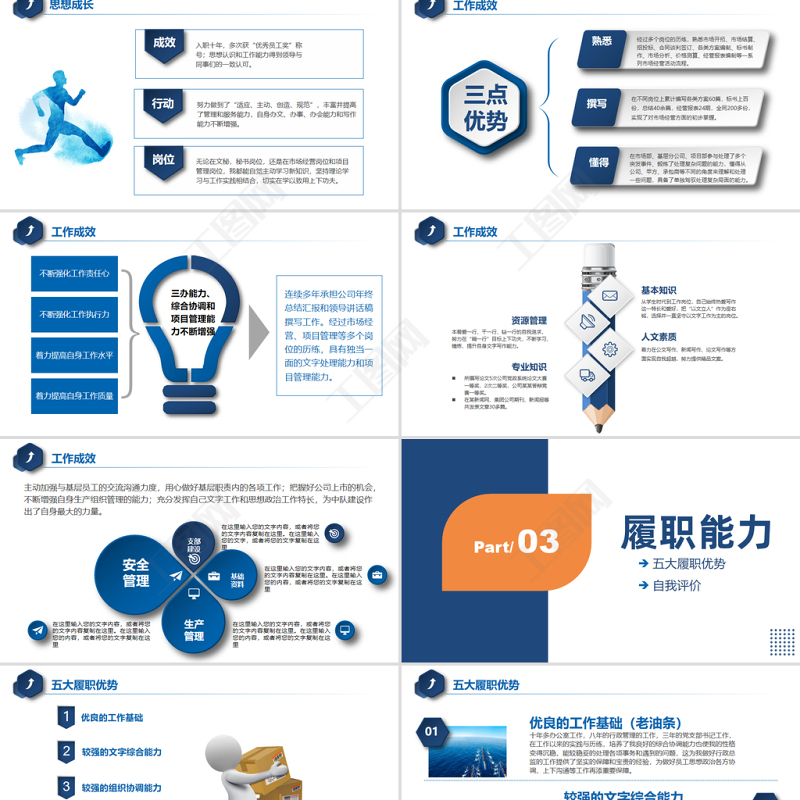 工作成效不斷強化工作責(zé)任心不斷強化工作執(zhí)行力著力提高自身工作水平著力提高自身工作質(zhì)量連續(xù)多年承擔(dān)公司年終總結(jié)匯報和領(lǐng)導(dǎo)講話稿撰寫工作。經(jīng)過市場經(jīng)營、項目管理等多個崗位的歷練,具有獨當(dāng)一面的文字處理能力和項目管理能力。三辦能力、綜合協(xié)調(diào)和項目管理能力不斷增強