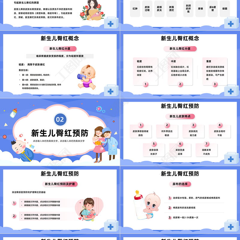 2023新生兒紅臀護(hù)理PPT卡通風(fēng)新生兒紅臀預(yù)防及處理培訓(xùn)課件模板下載 Array