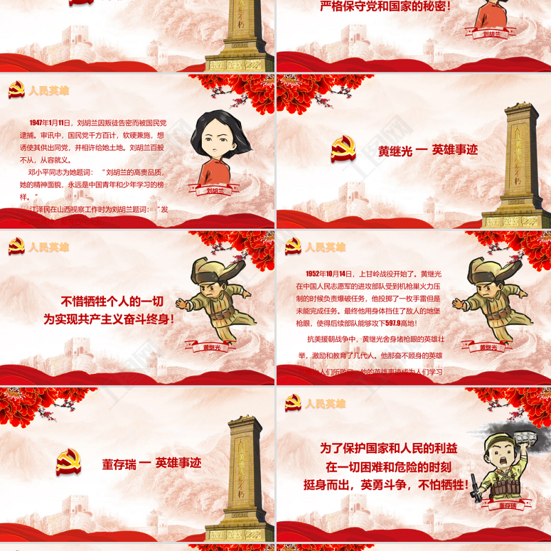 工圖網(wǎng)提供革命英雄紅色事跡學(xué)習(xí)宣傳PPT模板供會員免費下載。更多精彩黨課PPT素材,盡在工圖網(wǎng)。