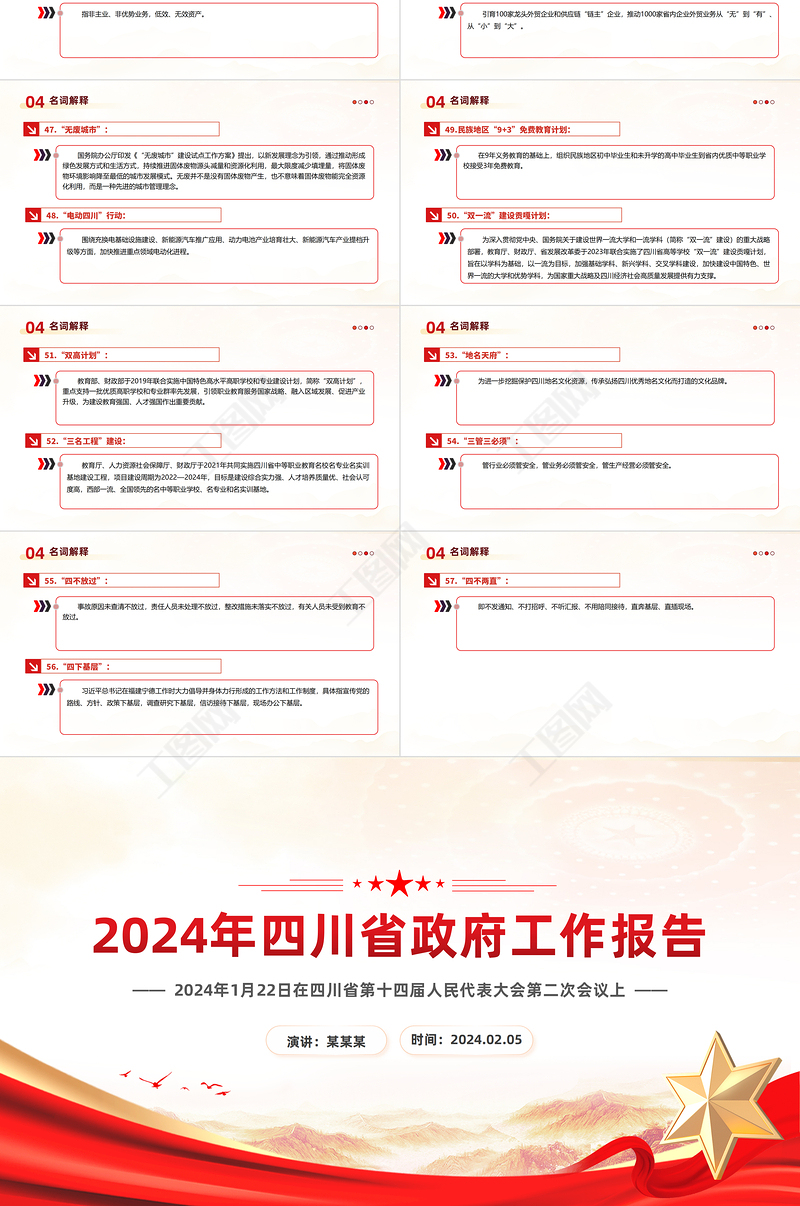工圖網提供2024年四川省政府工作報告PPT紅色簡潔黨政機關工作匯報模板供會員免費下載。更多精彩黨課PPT素材,盡在工圖網。