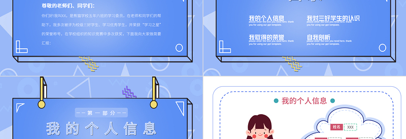 <p>PPT模板 雷鋒PPT網(wǎng)-WWW.LFPPT.COM PPT 雷鋒PPT網(wǎng)-WWW.LFPPT.COM雷鋒PPT網(wǎng)-WWW.LFPPT.COM免費PPT模板下載雷鋒PPT網(wǎng)-WWW.LFPPT.COM PPT模板雷鋒PPT網(wǎng)-WWW.LFPPT.COM PPT雷鋒PPT網(wǎng)-WWW.LFPPT.COMPPT模板下載雷鋒PPT網(wǎng)-WWW.LFPPT.COM PPT模板免費下載雷鋒PPT網(wǎng)-WWW.LFPPT.COM PPT教程雷鋒PPT網(wǎng)-WWW.LFPPT.COM PPT素材雷鋒PPT網(wǎng)-WWW.LFPPT.COM PPT課件區(qū)三好學(xué)生演講人:XXX 日期:2022我/肯/定/我/挑/戰(zhàn)/我/超/越做社會主義建設(shè)者和接班人</p><br><p>尊敬的老師們、同學(xué)們:你們好!我叫XX,是熊貓學(xué)校五年六班的學(xué)習(xí)委員,在老師和同學(xué)們的幫助下,我多次被評為校級三好學(xué)生、學(xué)習(xí)優(yōu)秀學(xué)生,并榮獲“學(xué)習(xí)之星”的榮譽稱號,在學(xué)校組織的知識競賽中多次獲獎,下面我向大家做簡要匯報:</p><br><p>目錄</p><br><p>我的個人信息我/肯/定/我/挑/戰(zhàn)/我/超/越</p><br><p>我的個人信息姓名XXX性別女年齡11班級5年6班學(xué)校熊貓中心小學(xué)</p><br><p>我的個人信息我的專屬標(biāo)簽好學(xué)多才多藝勞動能手好朋友“老好人”</p><br><p>我對三好學(xué)生的認(rèn)識我/肯/定/我/挑/戰(zhàn)/我/超/越</p><br><p>我對三好學(xué)生的認(rèn)識德智體</p><br><p>我對三好學(xué)生的認(rèn)識就是品德。平時的學(xué)習(xí)生活中,尊敬師長,友愛同學(xué),遵守校紀(jì)校規(guī),多做好人好事,受到老師的好評,在班級里有許多的朋友。我理解的“智”不僅僅是熱愛學(xué)習(xí)、學(xué)習(xí)成績優(yōu)秀、還應(yīng)該是興趣廣泛、有多個特長。有良好的運動細(xì)胞、喜歡熱愛鍛煉、喜歡并且積極參加各項體育運動。德智體</p><br><p>我取得的榮耀我/肯/定/我/挑/戰(zhàn)/我/超/越</p><br><p>我取得的榮譽2019-2021年連續(xù)三年獲得校三好學(xué)生2021年獲得市三好學(xué)生</p><br><p>我取得的榮譽在?;顒拥臉s譽獎項雛鷹少年十佳少年之星學(xué)習(xí)優(yōu)秀獎優(yōu)秀班干部潛力之星優(yōu)秀少先隊員手抄報一等獎現(xiàn)場作文比賽一等獎</p><br><p>我取得的榮譽興趣特長獎項“XX杯”兒童繪畫大賽中獲得了優(yōu)秀獎2022年暑假鼓號隊訓(xùn)練中,榮獲“優(yōu)秀鼓號隊員”稱號2022年10月四方區(qū)鼓號展演中,榮獲一等獎XX市第二十二屆小學(xué)藝術(shù)展演比賽中獲得二等獎</p><br><p>我取得的榮譽其他獎項希望杯1華羅庚金杯競賽證書2春蕾杯作文競賽3劍橋少兒英語4</p><br><p>自我剖析我/肯/定/我/挑/戰(zhàn)/我/超/越</p><br><p>自我剖析我熱愛集體,關(guān)心同學(xué),樂于奉獻(xiàn),我總是在同學(xué)有困難的時候幫助他們排憂解難。班級有什么活動,我都踴躍參加,并積極組織、參加學(xué)校的各項活動,能出色地完成班主任老師交給我的各項任務(wù);在班里日常工作中認(rèn)真負(fù)責(zé),勇于管理,及時耐心地做好同學(xué)的思想工作。德育方面我在學(xué)校是個好學(xué)生,在班級我既是好學(xué)生,也是老師的好幫手。</p><br><p>自我剖析我學(xué)習(xí)踏實,嚴(yán)格認(rèn)真,堅持課前預(yù)習(xí)和課后復(fù)習(xí),成績一直優(yōu)秀,語文、數(shù)學(xué)、英語三科成績名列前茅。我積極參加各項體育活動,課間操也積極領(lǐng)操,參加學(xué)校的運動會,并堅持在家進(jìn)行體育鍛煉。學(xué)習(xí)方面體育方面</p><br><p>自我剖析我興趣廣泛,喜歡游泳、電腦、繪畫、音樂等。課余還會練習(xí)剪紙和閱讀課外書,并參加學(xué)校第二課堂的舞蹈班學(xué)習(xí),今年我開始了圍棋的學(xué)習(xí),以全面提高自己的綜合素質(zhì)。素質(zhì)方面</p><br><p>自我剖析成績的取得,離不開老師、同學(xué)們對我的支持與幫助。沒有老師的精心栽培、沒有同學(xué)的熱心幫助,就不會有我今天的成績;就不會有一個朝氣蓬勃、無所畏懼、敢于向明天挑戰(zhàn)的少年。如果我這次競選成功,我一定會盡我所能,盡心盡力為同學(xué),服務(wù),我將更加以新時代學(xué)生的標(biāo)準(zhǔn)要求自己,來體現(xiàn)自我價值,實現(xiàn)全面發(fā)展的好學(xué)生。</p><br><p>PPT模板 雷鋒PPT網(wǎng)-WWW.LFPPT.COM PPT 雷鋒PPT網(wǎng)-WWW.LFPPT.COM雷鋒PPT網(wǎng)-WWW.LFPPT.COM免費PPT模板下載雷鋒PPT網(wǎng)-WWW.LFPPT.COM PPT模板雷鋒PPT網(wǎng)-WWW.LFPPT.COM PPT雷鋒PPT網(wǎng)-WWW.LFPPT.COMPPT模板下載雷鋒PPT網(wǎng)-WWW.LFPPT.COM PPT模板免費下載雷鋒PPT網(wǎng)-WWW.LFPPT.COM PPT教程雷鋒PPT網(wǎng)-WWW.LFPPT.COM PPT素材雷鋒PPT網(wǎng)-WWW.LFPPT.COM PPT課件區(qū)三好學(xué)生演講人:XXX 日期:2022我/肯/定/我/挑/戰(zhàn)/我/超/越做社會主義建設(shè)者和接班人</p><br>