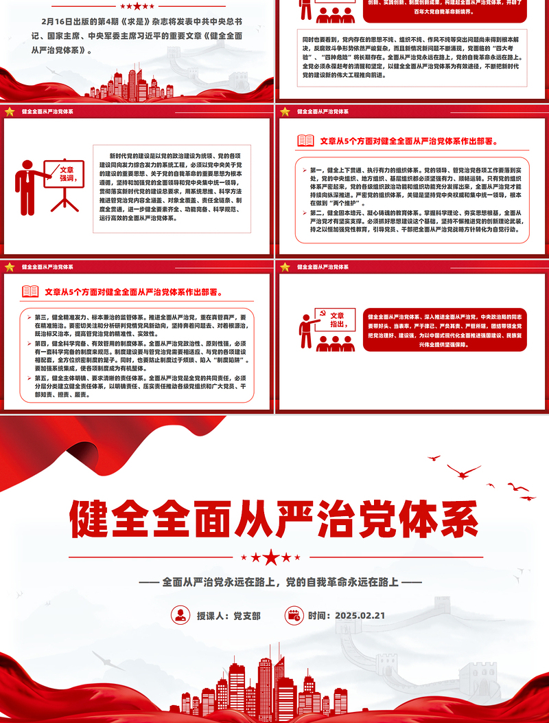 健全全面從嚴治黨體系PPT紅色簡潔總書記重要文章學習課件 Array