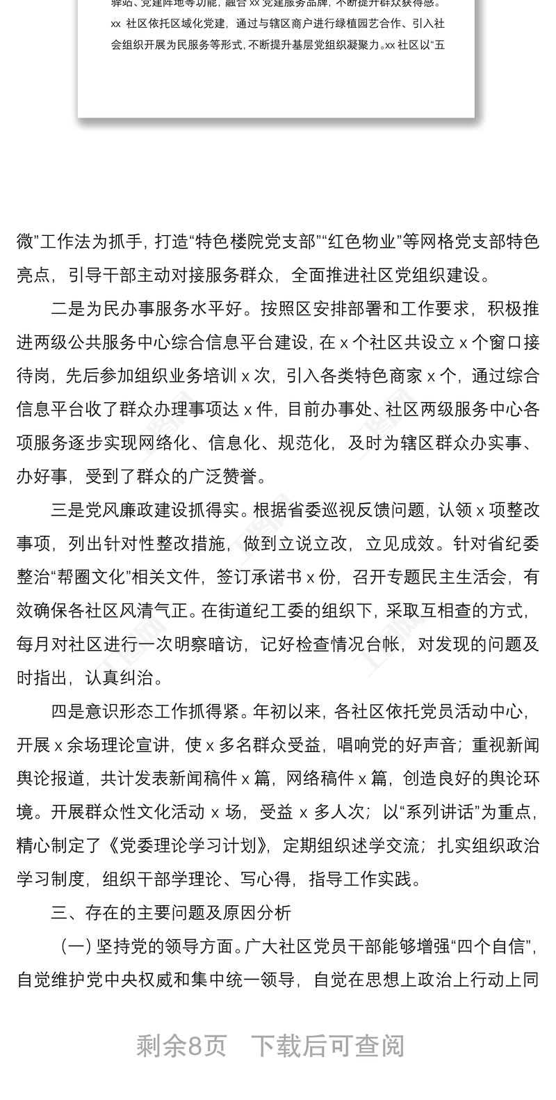 工圖網(wǎng)提供2021街道辦事處社區(qū)全面建設(shè)情況匯報材料(向巡察社區(qū)組的工作匯報)供會員免費下載。更多精彩黨課PPT素材,盡在工圖網(wǎng)。
