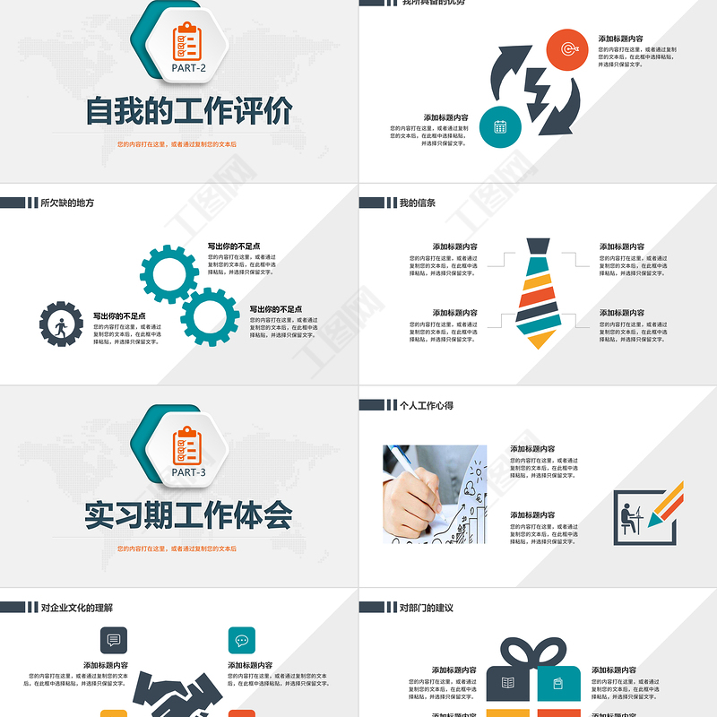 工圖網(wǎng)提供2022實習(xí)轉(zhuǎn)正述職PPT簡潔微粒體風(fēng)實習(xí)期轉(zhuǎn)正新員工轉(zhuǎn)正述職報告模板供會員免費下載。更多精彩黨課PPT素材,盡在工圖網(wǎng)。