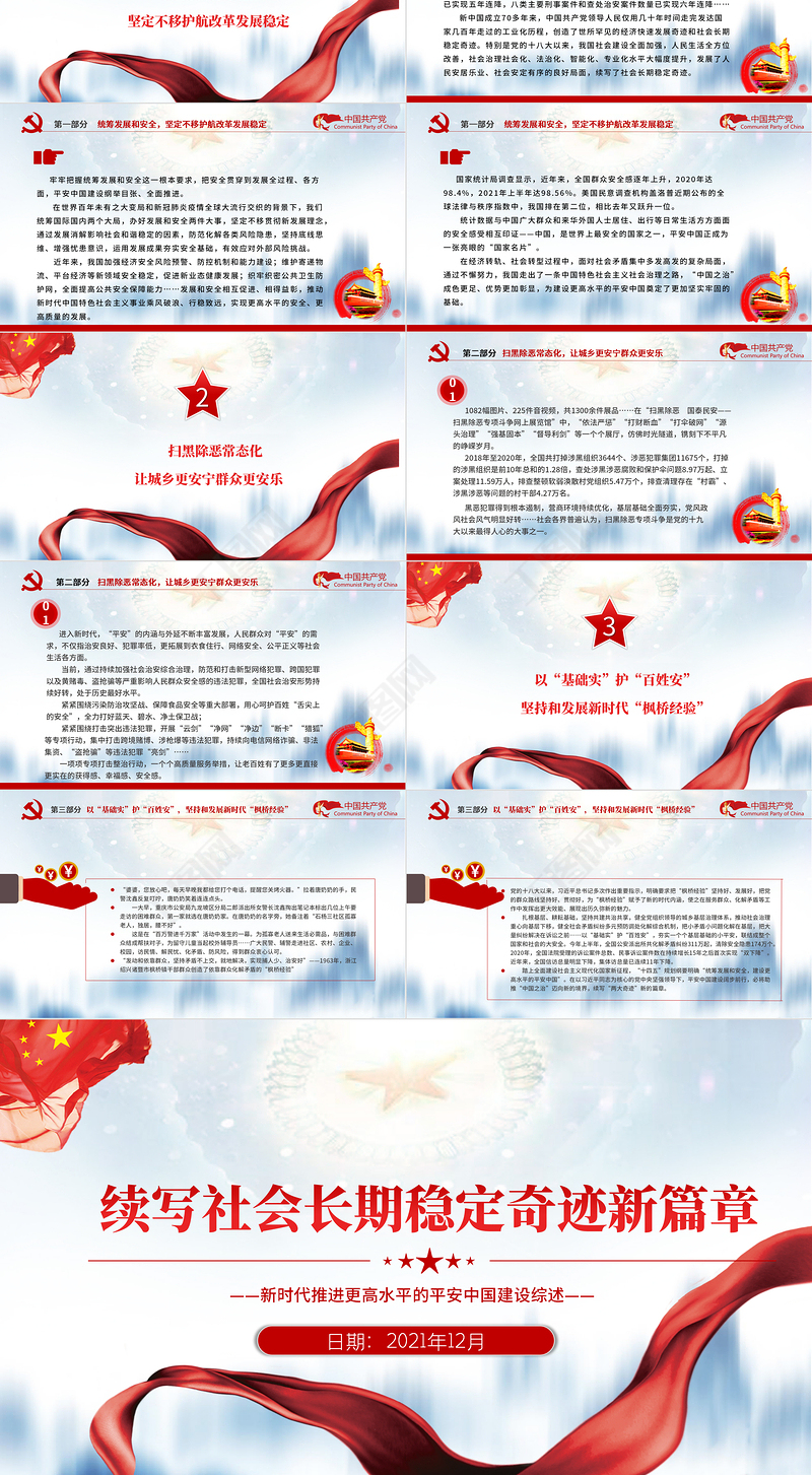 續(xù)寫社會長期穩(wěn)定奇跡新篇章 PPT 紅色 莊嚴 新時代 推進更高水平的平安中國建設 綜述黨課 課件 Array