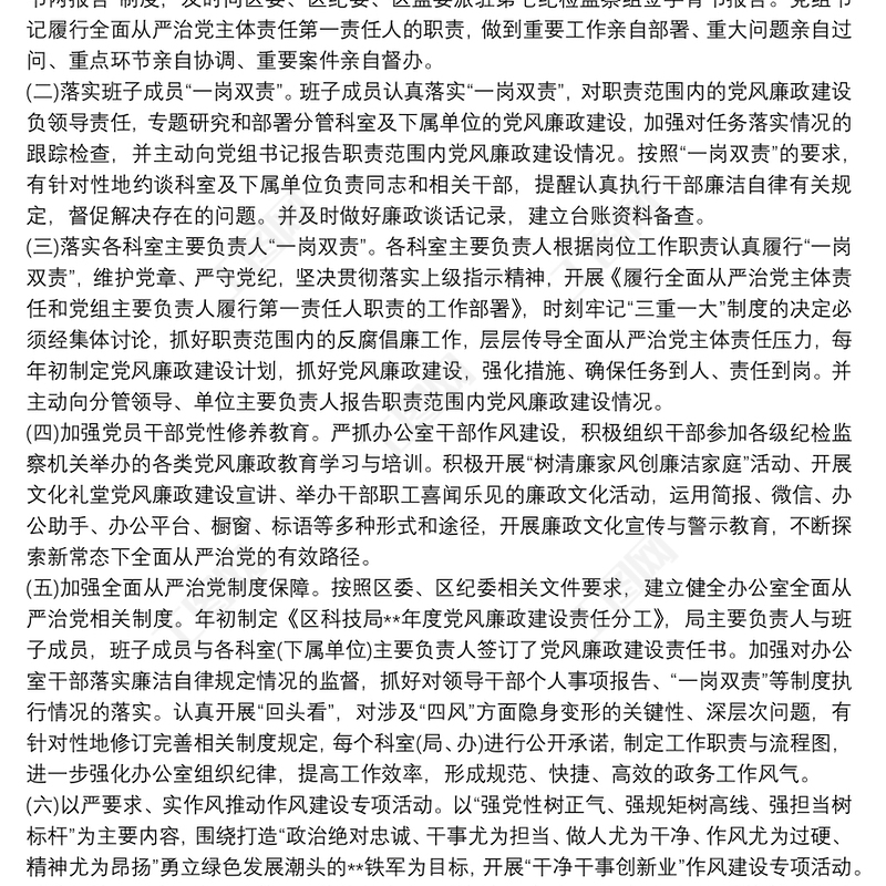 全面從嚴(yán)治黨”一崗雙責(zé)”責(zé)任落實(shí)情況報告包含