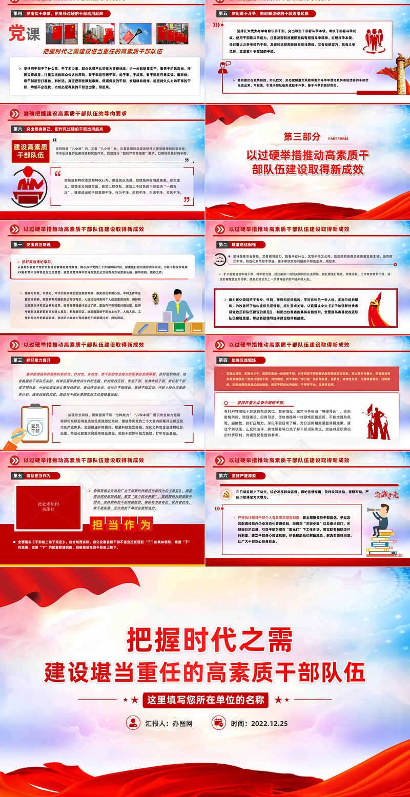 2022把握時(shí)代之需建設(shè)堪當(dāng)重任的高素質(zhì)干部隊(duì)伍PPT紅色精美風(fēng)黨員干部學(xué)習(xí)教育專題黨課黨建課件模板 Array