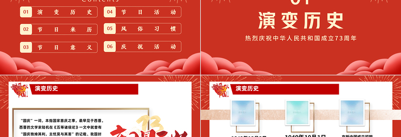 工圖網(wǎng)提供2022喜迎國(guó)慶PPT建國(guó)73周年國(guó)慶節(jié)主題班會(huì)課件模板供會(huì)員免費(fèi)下載。更多精彩黨課PPT素材,盡在工圖網(wǎng)。