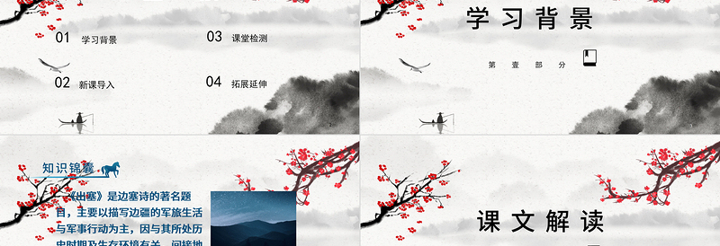2022-9-2126統(tǒng)編版四年級(jí)語文上冊(cè)課件《出塞》辦圖網(wǎng)www.888ppt.com演講人:辦圖網(wǎng) 時(shí)間:2022.XX