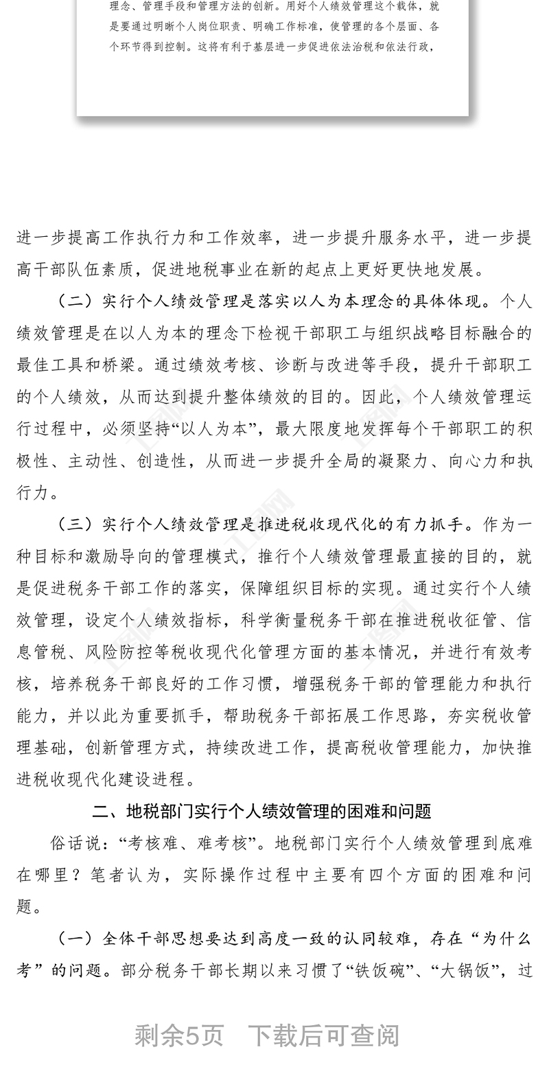 2021關(guān)于地稅部門實(shí)行個(gè)人績(jī)效管理的思考