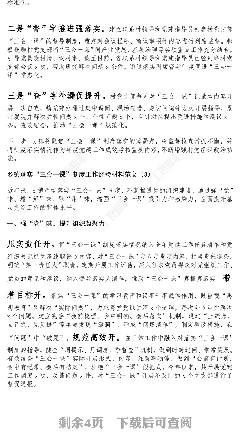 工圖網(wǎng)提供鄉(xiāng)鎮(zhèn)落實“三會一課”制度工作經(jīng)驗材料精選范文供會員免費下載。更多精彩黨課PPT素材,盡在工圖網(wǎng)。