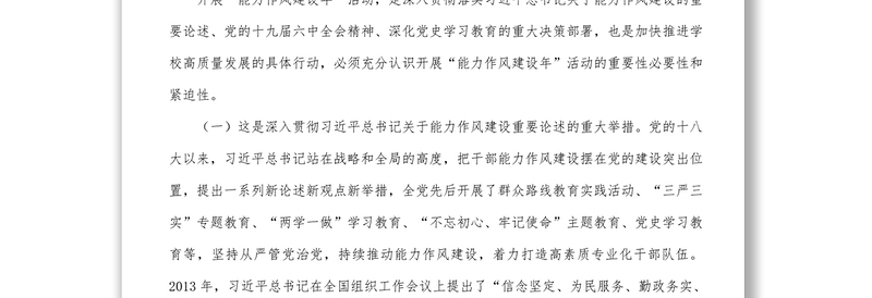 在學(xué)校能力作風(fēng)建設(shè)年活動(dòng)動(dòng)員會(huì)上的講話