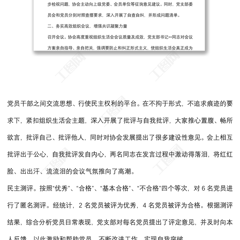 工圖網(wǎng)提供行業(yè)協(xié)會組織生活會和民主評議黨員情況報告供會員免費下載。更多精彩黨課PPT素材,盡在工圖網(wǎng)。
