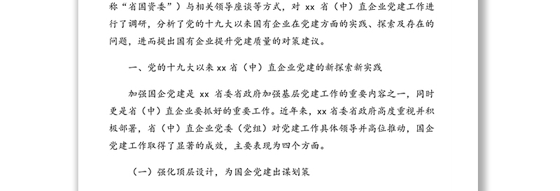 關(guān)于高質(zhì)量黨建引領(lǐng)國企高質(zhì)量發(fā)展的調(diào)研報(bào)告,調(diào)研報(bào)告,公文范文 Array