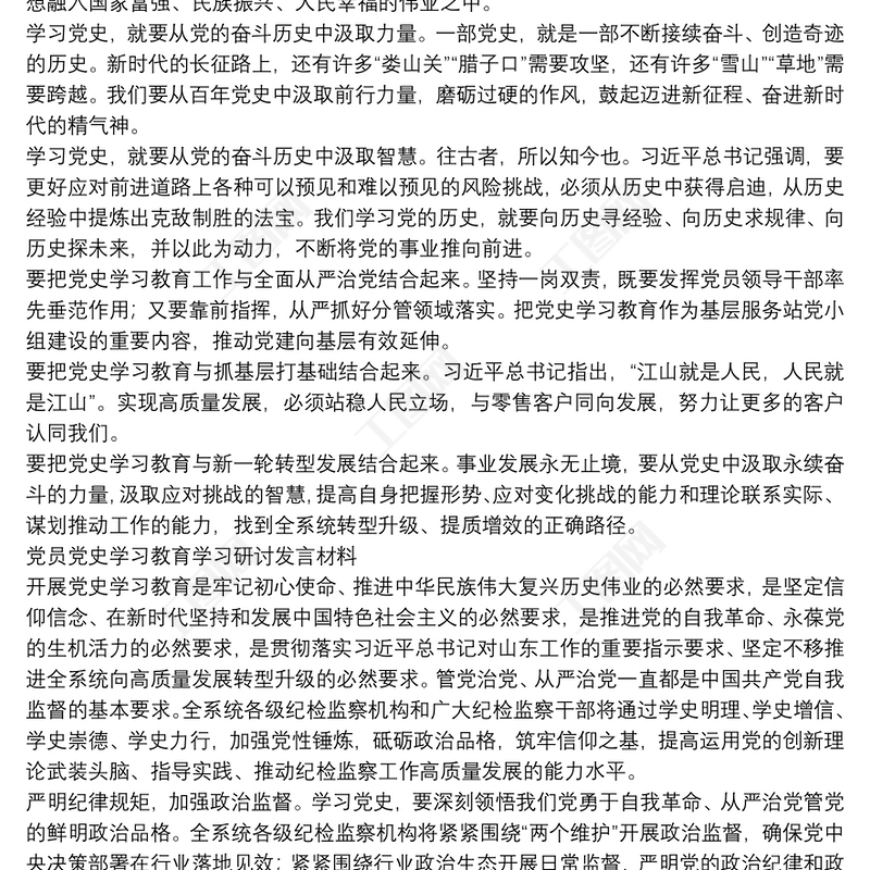 工圖網(wǎng)提供黨員黨史學(xué)習(xí)教育學(xué)習(xí)研討發(fā)言材料供會員免費下載。更多精彩黨課PPT素材,盡在工圖網(wǎng)。