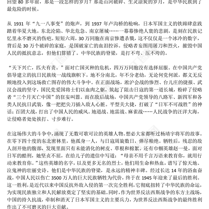 > 循歷史足跡感勝利榮光悟今朝使命PPT紀(jì)念抗戰(zhàn)勝利80周年醫(yī)務(wù)工作者發(fā)言材料(講稿).DOCX 【圖片、文字、動(dòng)畫均可編輯】