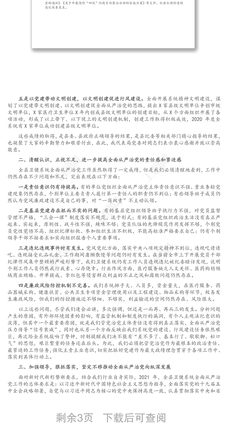 在全縣衛(wèi)健系統(tǒng)全面從嚴治黨工作會議上的講話,全面從嚴治黨,公文范文 Array