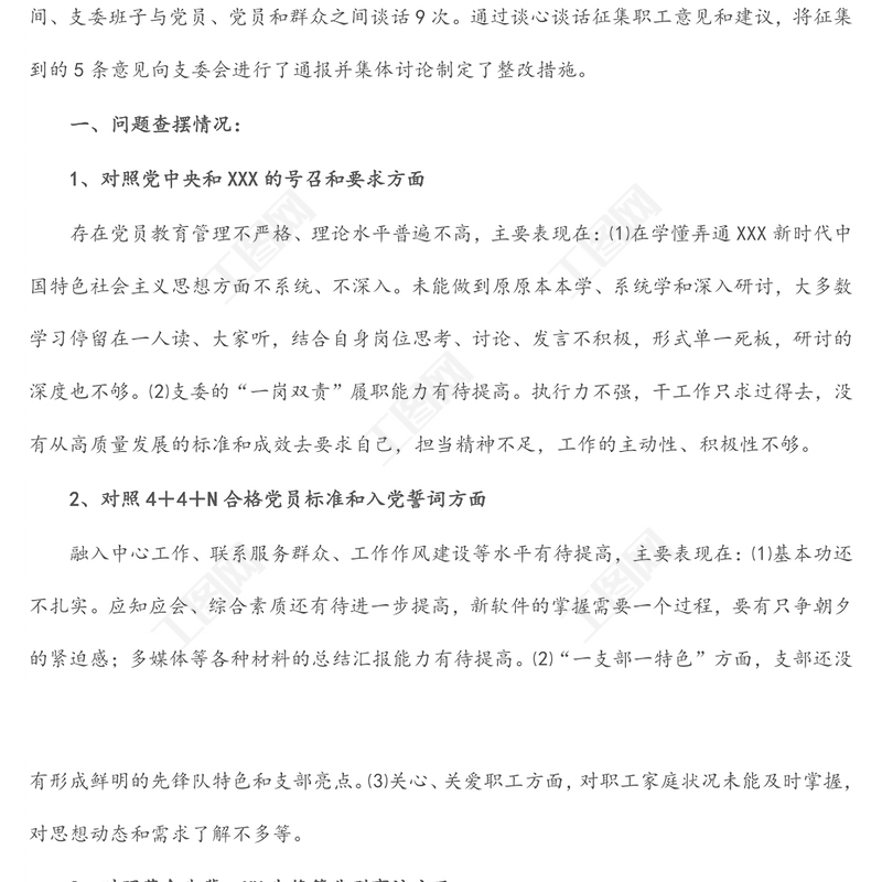 2021年黨支部組織生活會支部委員會查擺問題情況及整改措施