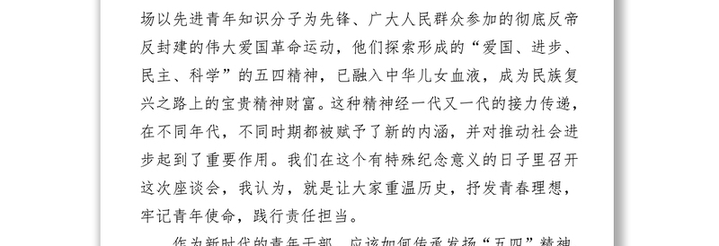 在紀(jì)念五四運(yùn)動(dòng)100周年青年座談會(huì)上的發(fā)言