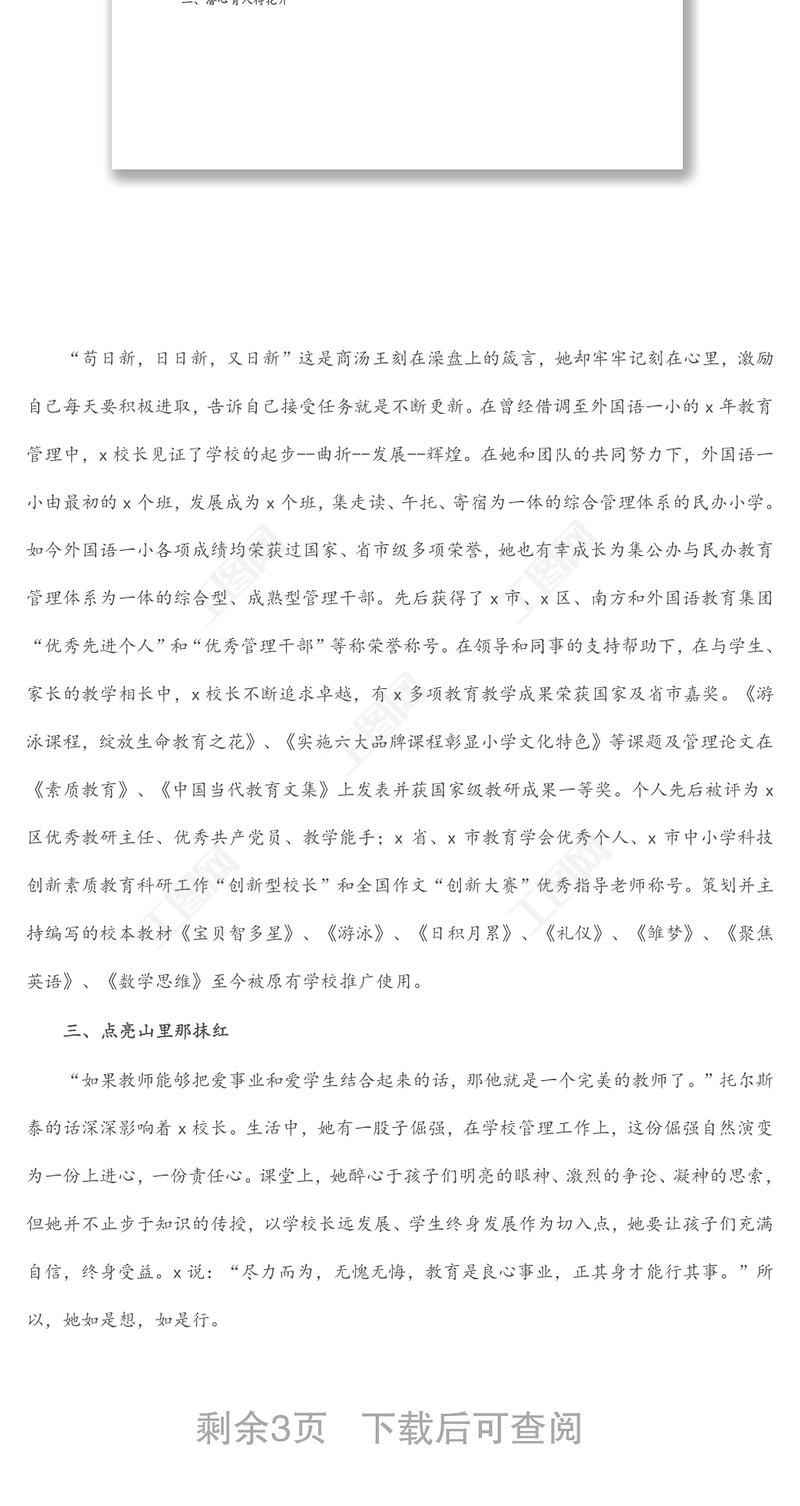 工圖網(wǎng)提供學(xué)校校長先進(jìn)事跡材料(1)供會(huì)員免費(fèi)下載。更多精彩黨課PPT素材,盡在工圖網(wǎng)。
