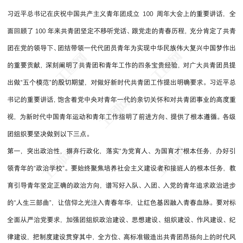學(xué)習(xí)貫徹慶祝中國共產(chǎn)主義青年團(tuán)成立100周年大會(huì)精神座談會(huì)總結(jié)講話提綱
