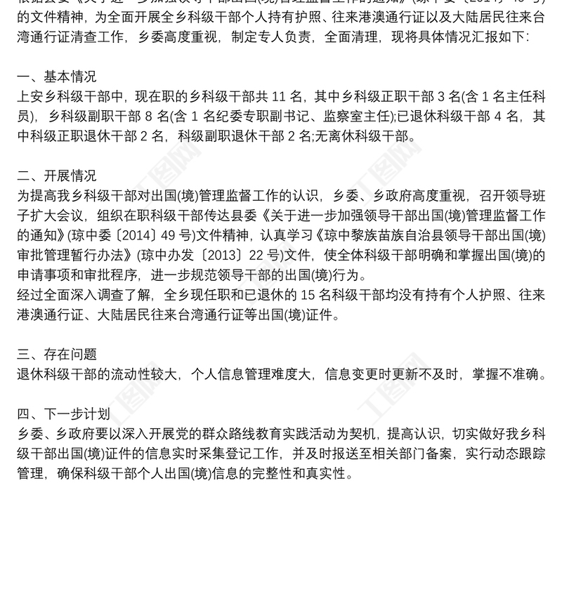 因私出國境自查報告