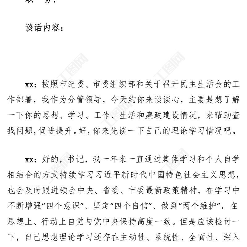 工圖網(wǎng)提供民主生活會談心談話記錄供會員免費下載。更多精彩黨課PPT素材,盡在工圖網(wǎng)。
