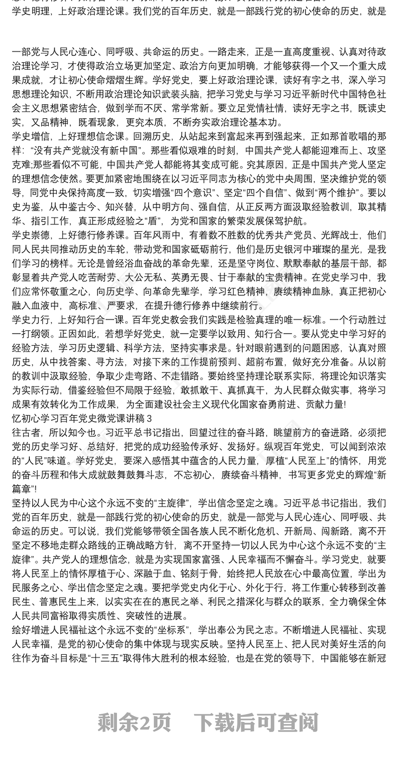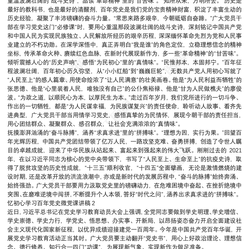 憶初心學(xué)習(xí)百年黨史微黨課講稿3篇包含