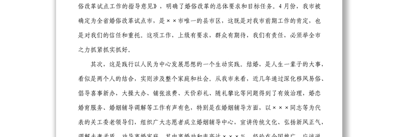 在全市婚俗改革試點(diǎn)工作動(dòng)員會(huì)議上的講話1