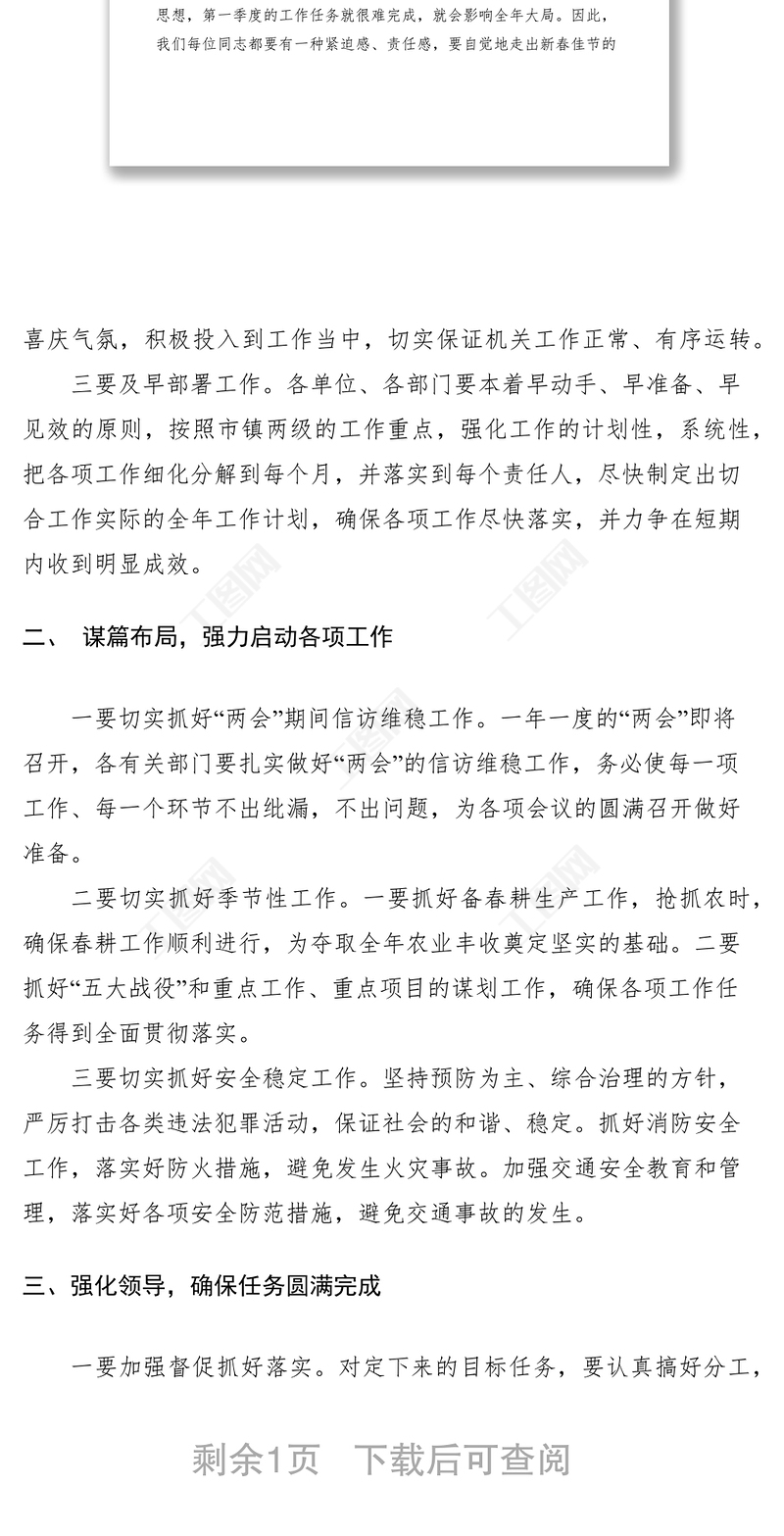 工圖網(wǎng)提供2021XXXX年春節(jié)收心會上領(lǐng)導(dǎo)講話稿供會員免費下載。更多精彩黨課PPT素材,盡在工圖網(wǎng)。