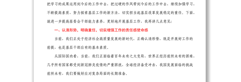 在新一屆村居委會(huì)干部培訓(xùn)班結(jié)業(yè)總結(jié)會(huì)個(gè)人講話(huà)發(fā)言