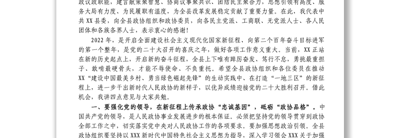 在政協(xié)縣第十二屆委員會第二次會議開幕會上的講話1
