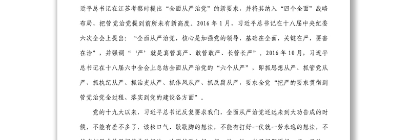 2021年度全面從嚴(yán)治黨主體責(zé)任工作要點(diǎn)2021全面從嚴(yán)治黨專題黨委會(huì)講話2021紀(jì)檢組長(zhǎng)全面從嚴(yán)治黨工作報(bào)告講話制定下發(fā)2022年黨風(fēng)廉政建設(shè)工作要點(diǎn)和全面從嚴(yán)治黨責(zé)任清單與各科室負(fù)2022落實(shí)全面從嚴(yán)治黨主體責(zé)任支部主要負(fù)責(zé)人落實(shí)第一責(zé)任人情況報(bào)告2023全面從嚴(yán)治黨制度從嚴(yán)治黨2022在落實(shí)全面從嚴(yán)治黨主體責(zé)任工作會(huì)議上的講話2023全面從嚴(yán)治黨集體談話制度2023全面從嚴(yán)治黨分級(jí)約談報(bào)告2023全面從嚴(yán)治黨講話例子2023全面從嚴(yán)治黨個(gè)別約談提綱2023沈小龍全面從嚴(yán)治黨講話