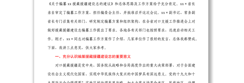 在援藏援疆建設(shè)志編纂工作會(huì)議上的講話