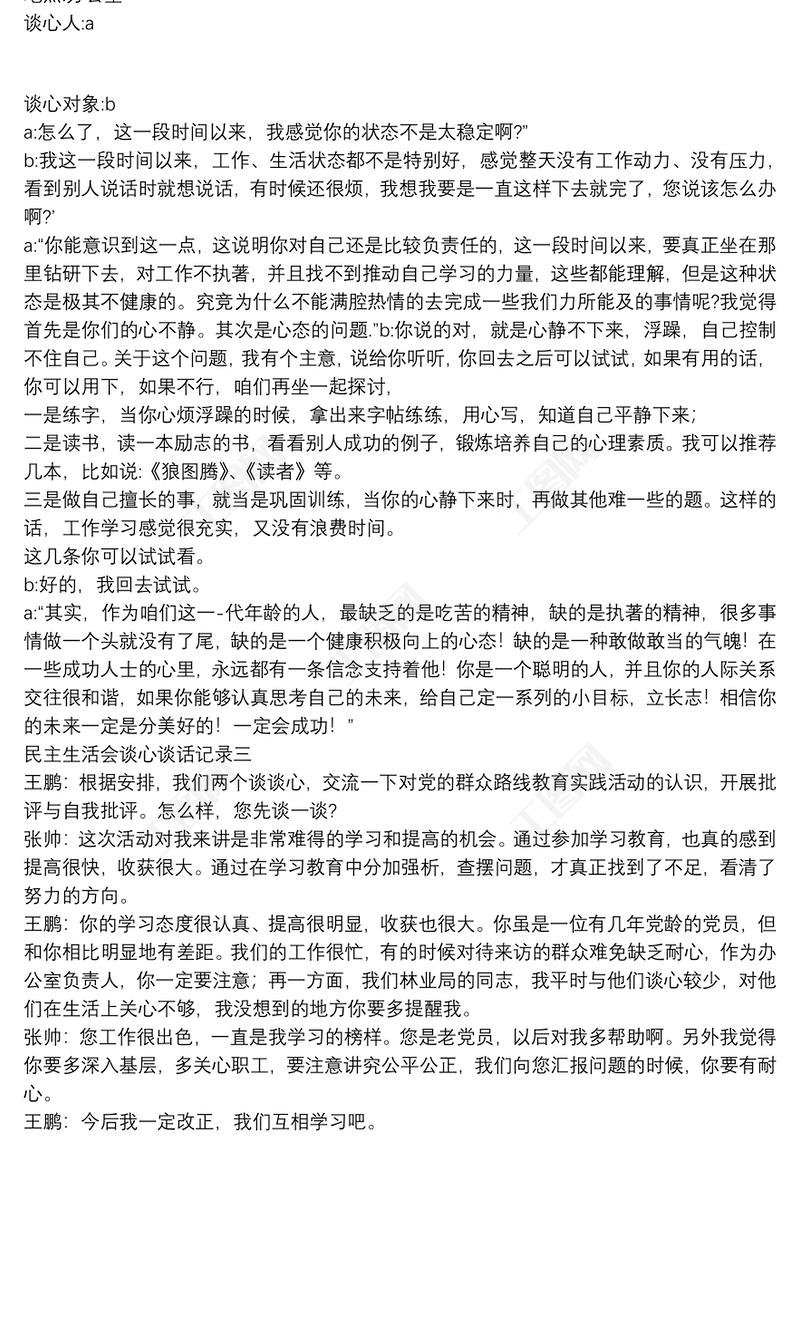 民主生活會批評與自我批評談心談話記錄三篇 Array