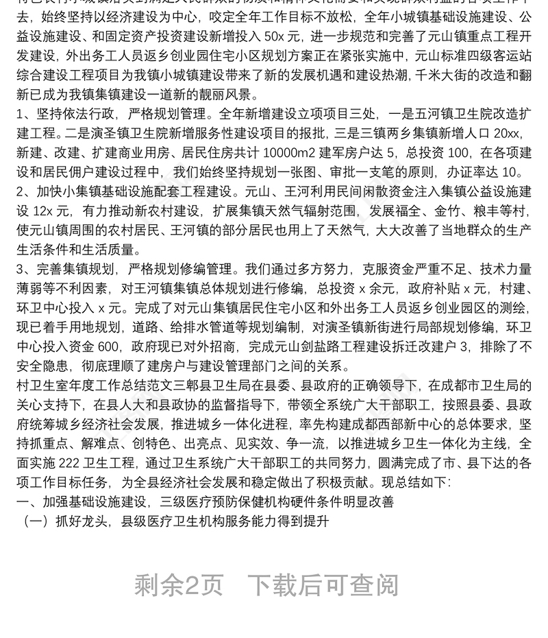 村衛(wèi)生室年度工作總結及工作思路 Array