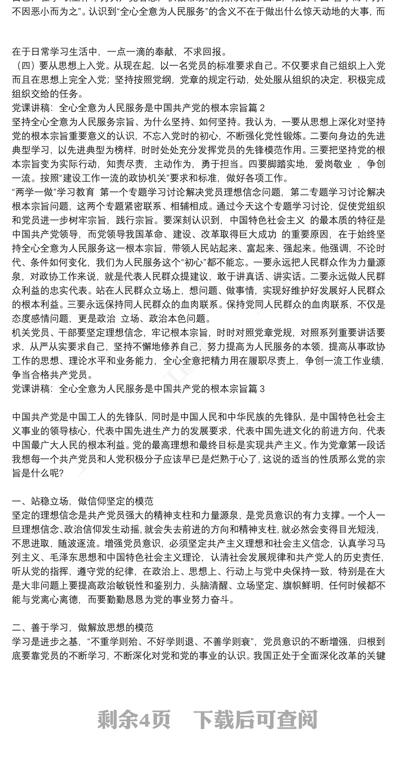 工圖網(wǎng)提供堅(jiān)持全心全意為人民服務(wù)黨課講稿_黨課講稿:全心全意為人民服務(wù)是中國(guó)共產(chǎn)黨的根本宗旨6篇供會(huì)員免費(fèi)下載。更多精彩黨課PPT素材,盡在工圖網(wǎng)。