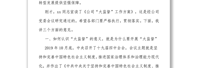 在公司黨風廉政建設大監(jiān)督工作動員會暨第一次聯(lián)席會上的講話
