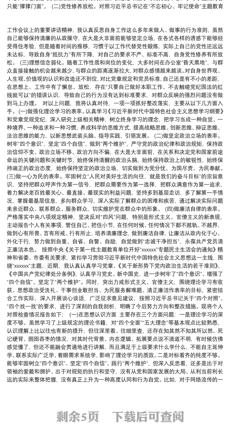 第二批“不忘初心、牢記使命”主題教育:“四個對照”“四個找一找”民主生活會個人對照檢查材料包含