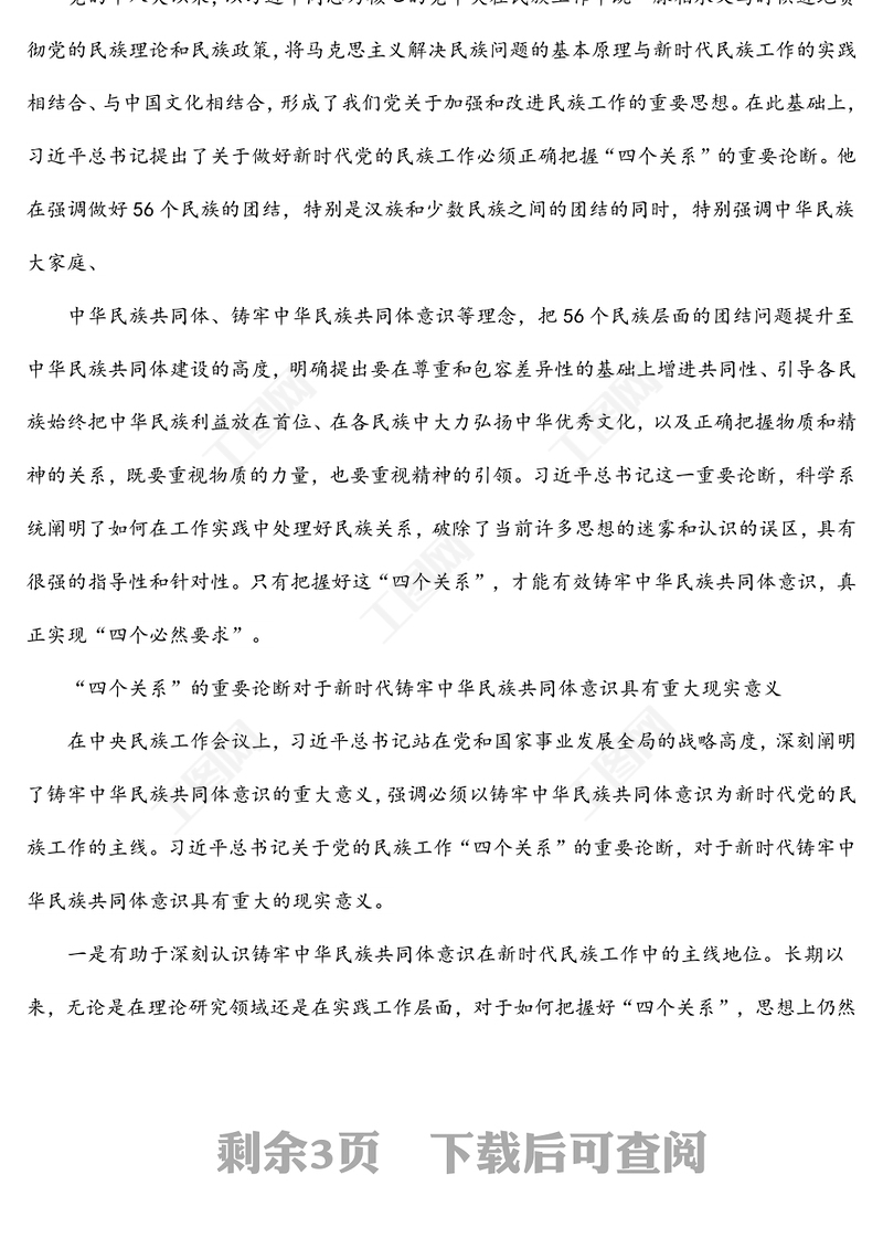 黨課講稿 > 民族工作黨課專題黨課講稿:做好黨的民族工作必須正確把握“四個關系”.DOCX