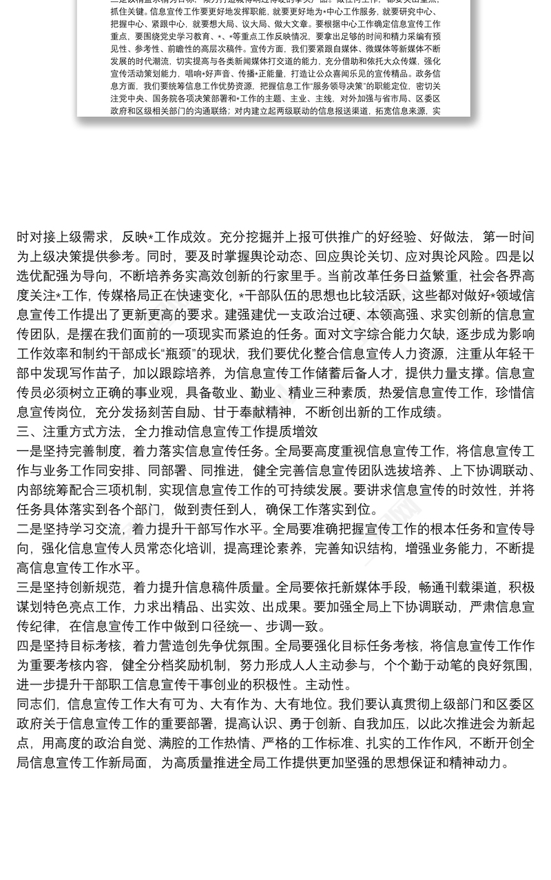 黨委書記在信息宣傳工作推進(jìn)會(huì)上的講話