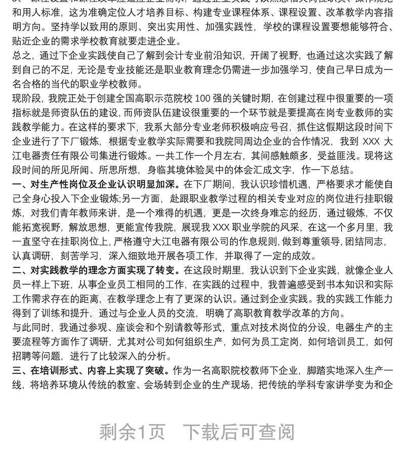 教師下企業(yè)實(shí)踐總結(jié)三篇
