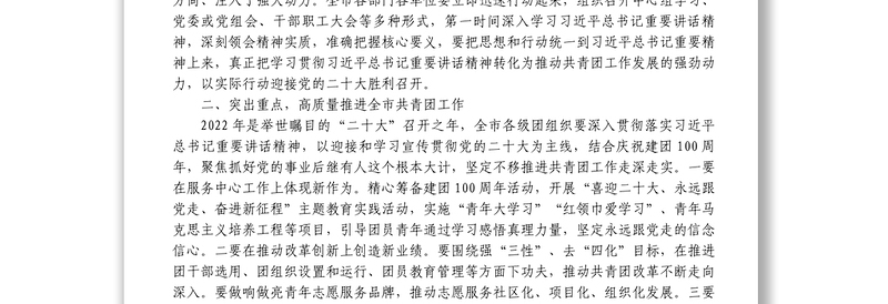 在慶祝中國共產(chǎn)主義青年團(tuán)成立100周年大會上的重要講話精神傳達(dá)提綱