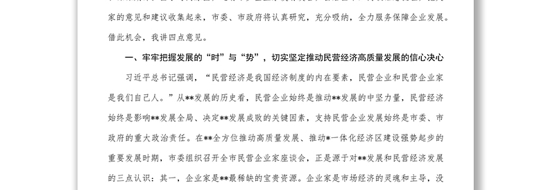 在全市民營企業(yè)家座談會上的講話