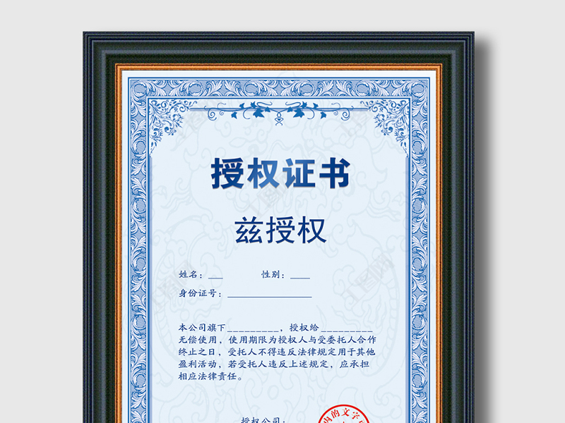 2021年2017年藍(lán)色簡約花紋授權(quán)書模板