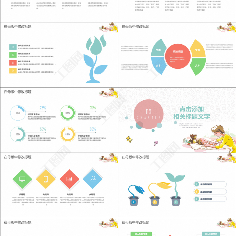 2021馬卡龍淡藍手繪植物工作總結(jié)工作計劃PPT模板包含