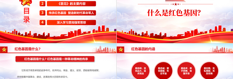 目錄什么是紅色基因?1《意見》的主要內(nèi)容2傳承紅色基因 塑造新時代革命軍人3深入學(xué)習(xí)貫徹強軍思想4